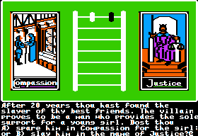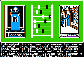 At the start of the game, the player would meet a Roma fortune teller (referred to as a “gypsy” in the original game) who would start a “minigame” by asking the player a series of moral questions. Your answers to these questions would determine both your starting location and the class of your player character. These questions fascinated me (I was not the only one), and I became somewhat obsessed with the goal of becoming the Avatar, the embodiment of the 8 virtues (Compassion, Honesty, Honor, Humility, Justice, Sacrifice, Spirituality, and Valor) espoused in the game. You can answer these questions yourself, if you want.