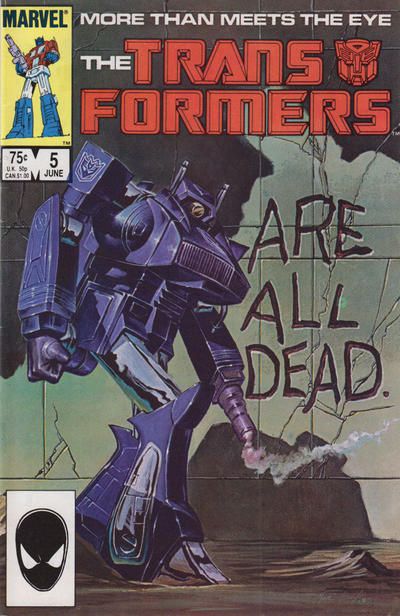 I also read the comics, starting first with the Marvel series. (I still have copies of a lot of them.) The fact that Ratchet, one of my first transformers, was a substantial character in the early Marvel series probably helped. Also, an absolutely epic cover for Transformers issue #5.